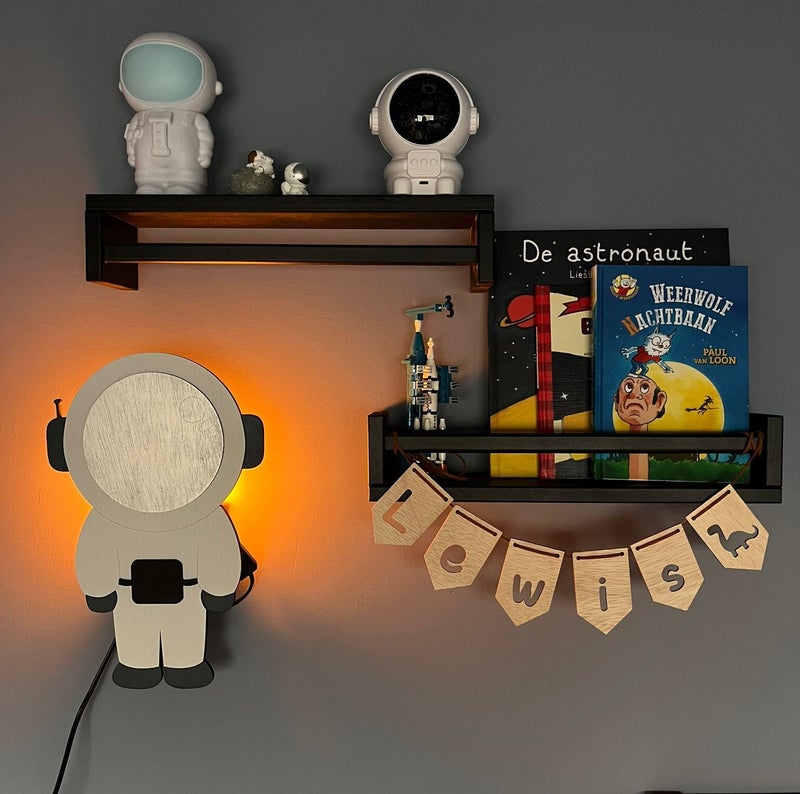 Heb je een specifiek thema voor de kinderkamer? Denk aan oceaan thema, bosdieren thema, ruimte thema of jungle thema. Dan kun je kiezen voor gepersonaliseerde lampen, kapstokjes of wandfiguren die perfect bij dit thema passen! Kleine details zoals de houten wanddecoratie in de vorm van bubbels die bij je oceaandiertje als wandlamp passen, de planeet wandfiguurtjes bij je astronauten wandlamp of de wanddecoratie van houten wolkjes bij je regenboog kapstokje maken je kamer helemaal af.