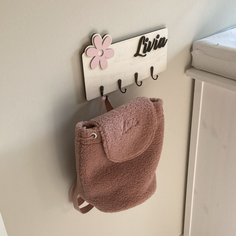 Goed om te weten: onze kapstokjes met naam kunnen best wat gewicht dragen, maar wij adviseren om niet meer dan 8kg gewicht aan de haakjes te hangen. De kapstokjes zijn perfect voor kledingstukken, een rugzakje of decoratie aan te hangen!