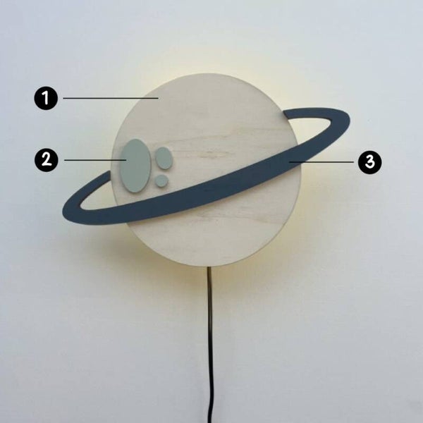 Deze houten Planeet wandlamp past geweldig op iedere babykamer of kinderkamer! Zeker voor de kamertjes met een ruimte thema of astronauten thema past dit planeet lampje perfect. Onze wandlamp is ideaal te gebruiken als nachtlampje, leeslampje of als je er 's nachts uit moet om je kind te voeden.
