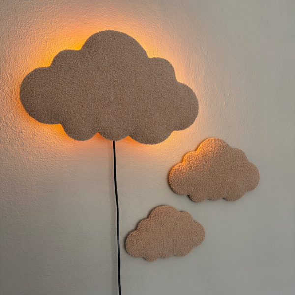 LICHT BEIGE TEDDY STOF | Wandlamp + wanddecoratie | Wolkjes